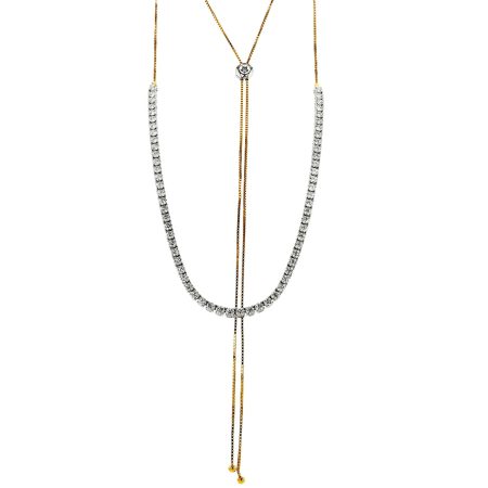 $402.00This diamond necklace features a sleek line of sparkling diamonds and an adjustable slider clasp for comfort and versatility. It can be adjusted from 16 to 32 inches, making it perfect for layering or wearing solo. Total Carat Weight 8.00 Diamonds Length 33in All diamonds are ethically sourced and guaranteed…