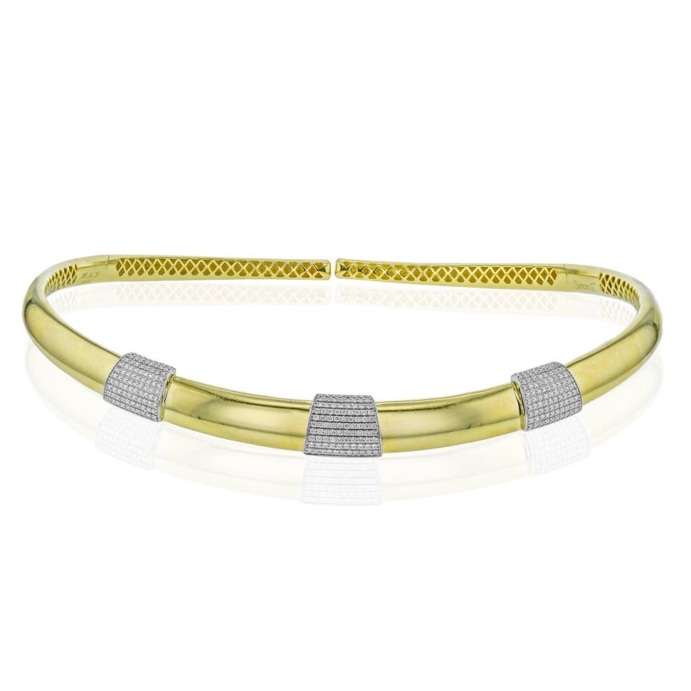 This stunning choker makes quite a statement in dazzling gold with sparkling diamond stations.