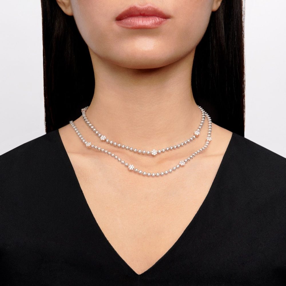 Glamorous yet refined, this stunning necklace sparkles with over 7.00 ctw of brilliant white diamonds and is extra long for layering.