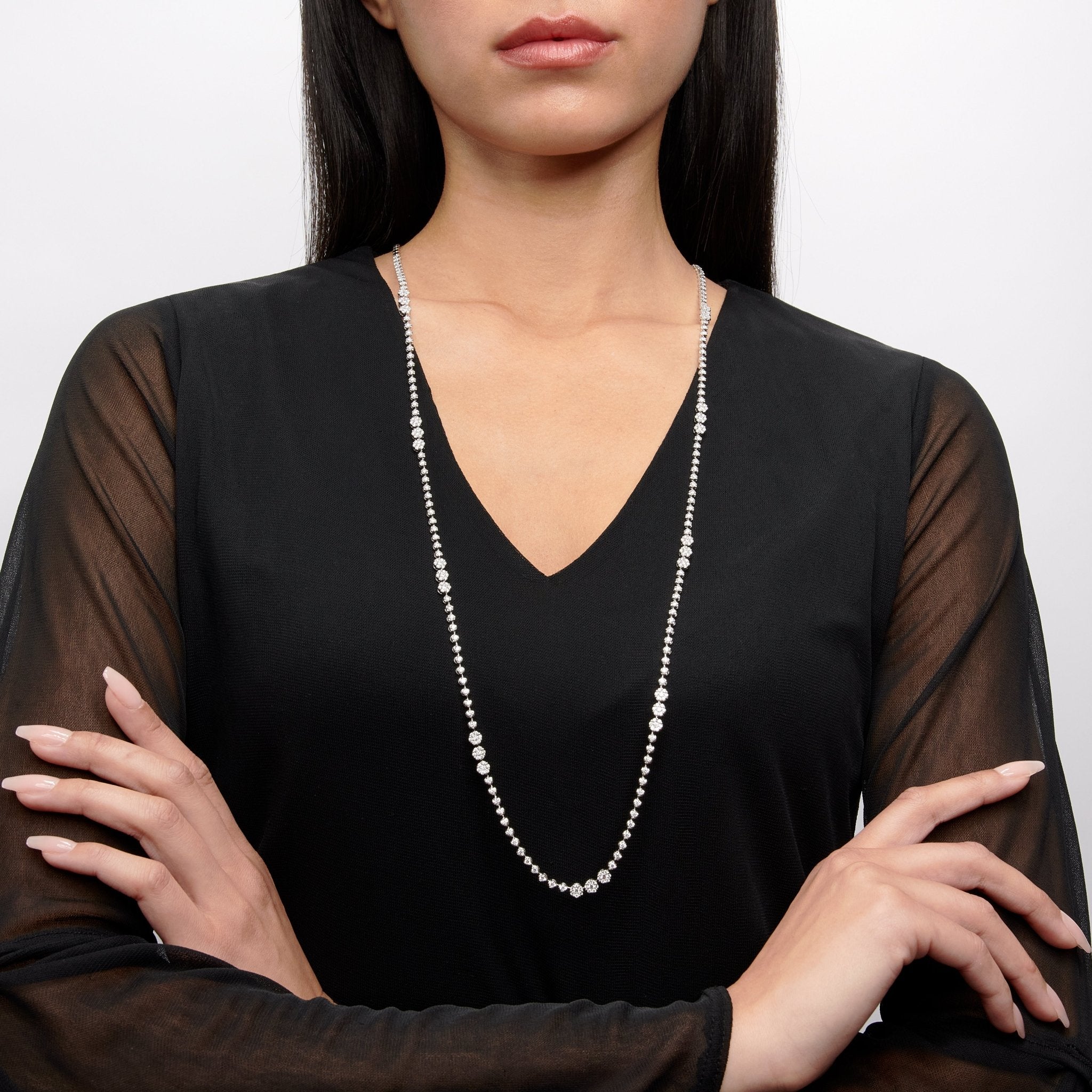 This deceptively delicate white and rose gold necklace is in fact quite substantial, featuring over 8.50 carats of brilliant white diamonds along an extra long chain for layering.